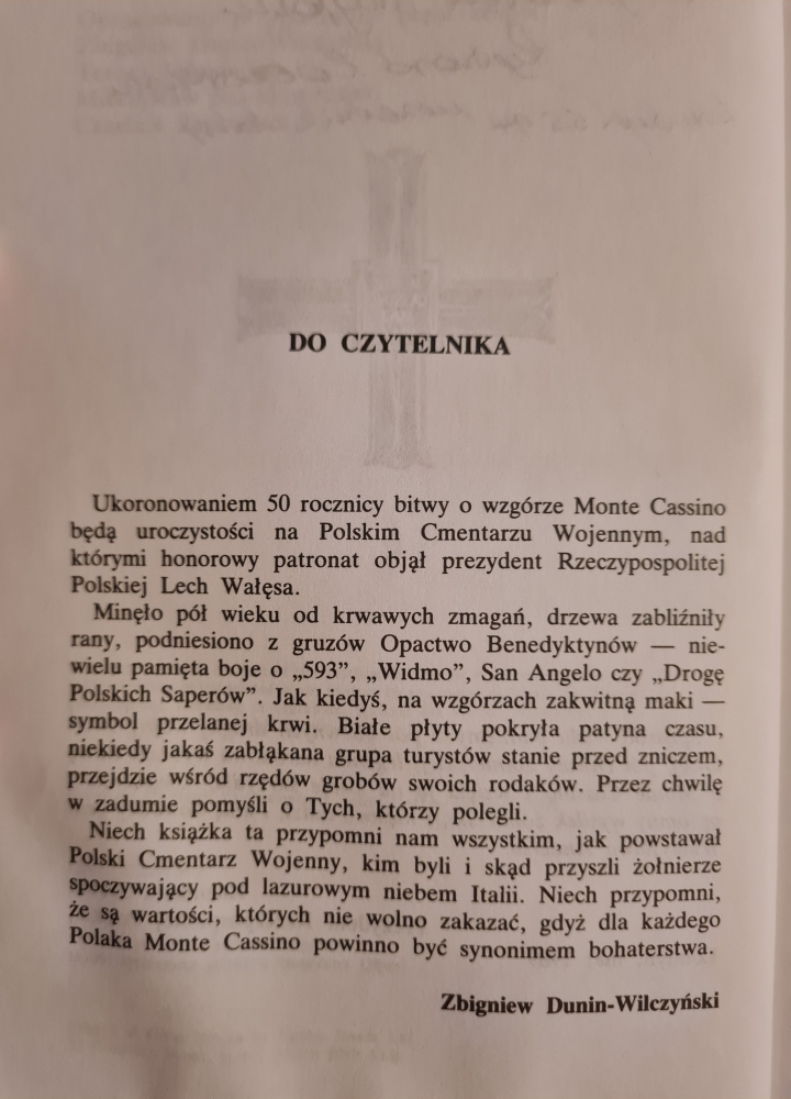 Na stronie trzeciej autograf Ryszarda Kaczorowskiego, uczestnika walk pod Monte Cassino, prezydenta Rzeczypospolitej Polskiej na Uchodźctwie